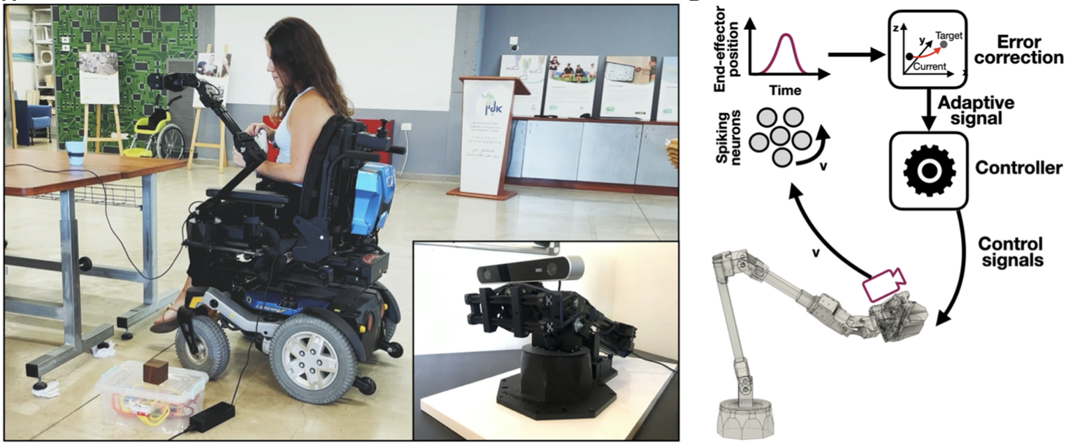 Adaptive Control of a Wheelchair-Mounted Robotic Arm with Neuromorphically Integrated Velocity Readings and Online Learning [PDF].